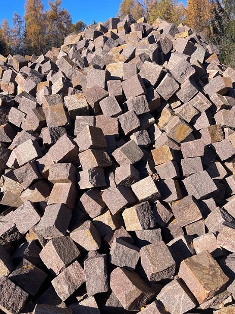 Porfír Kockakő 10x10x10 cm. Porfir kockakő természetesen hasított oldalakkal – tartós kültéri burkolat. A gránit kockakő természetesen hasított oldalakkal prémium burkolati megoldás, amelyet kiemelkedő tartóssága, természetes megjelenése és rendkívül hosszú élettartama miatt nagyra értékelnek.